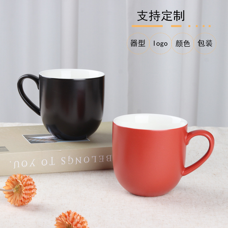 セラミックつや消しマグカップ赤ブラックプラスロゴコーヒーセラミックカップ400ml大容量ギフトカップ