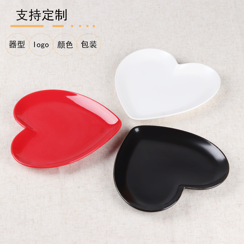 国境を越えた陶愛の皿桃の心の大きな赤い皿桃の心の碗の心の形の碗の愛のバレンタインデーの皿の色の釉薬の皿