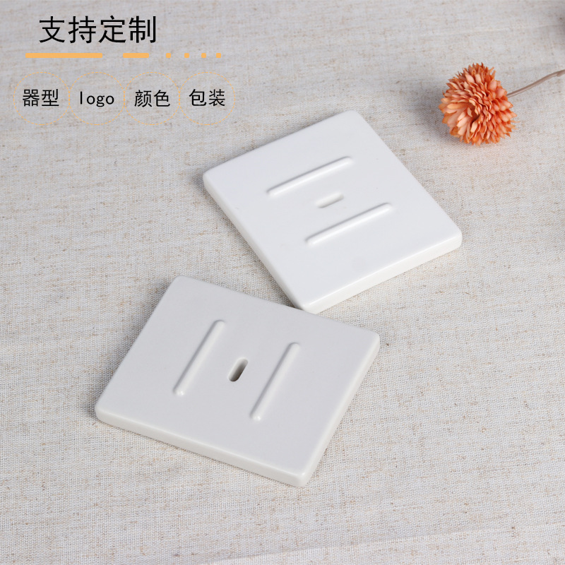 四角形のシンプルな陶磁器の白い石鹸の箱は水の石鹸の棚を切って水が溜まっていません。