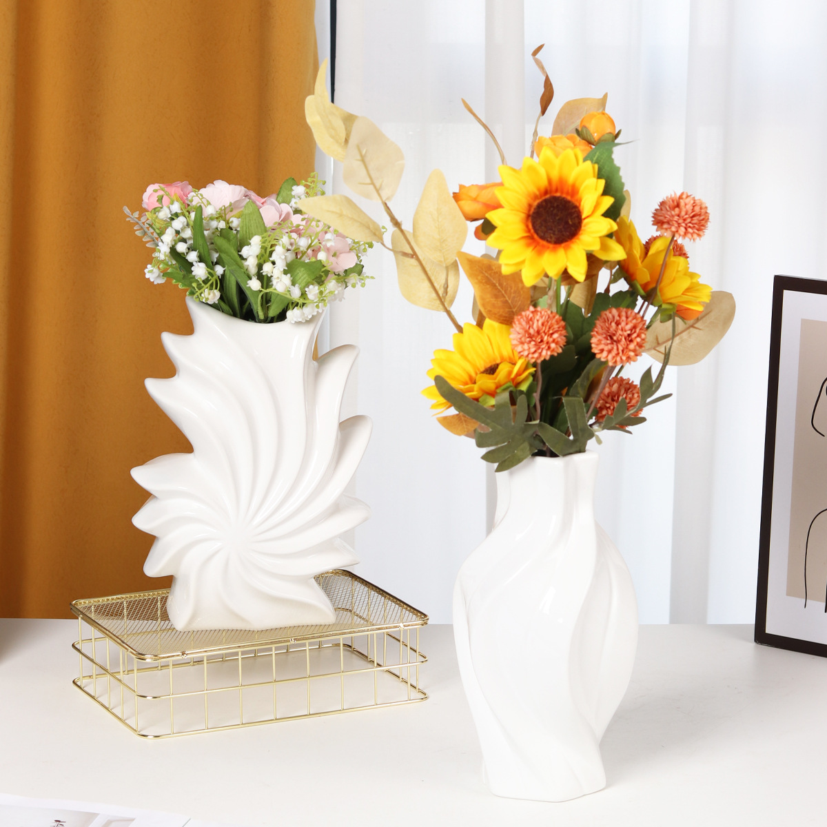 リビングのクリームスタイルの白い陶磁器の花瓶の置物の生け花の創意の花瓶