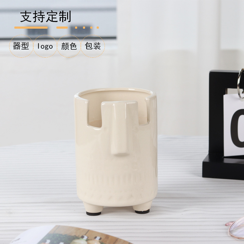 眼鏡スタンドセラミック筆筒オフィスデスクトップ置物プレゼントステーション装飾セラミック浮き彫り三星山筆立て