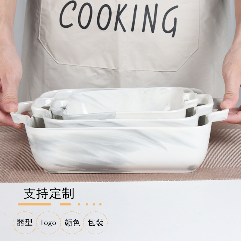 セラミック焙煎両耳長方形大理石紋焼き皿セラミックチーズグラタン電子レンジオーブン焙煎食器