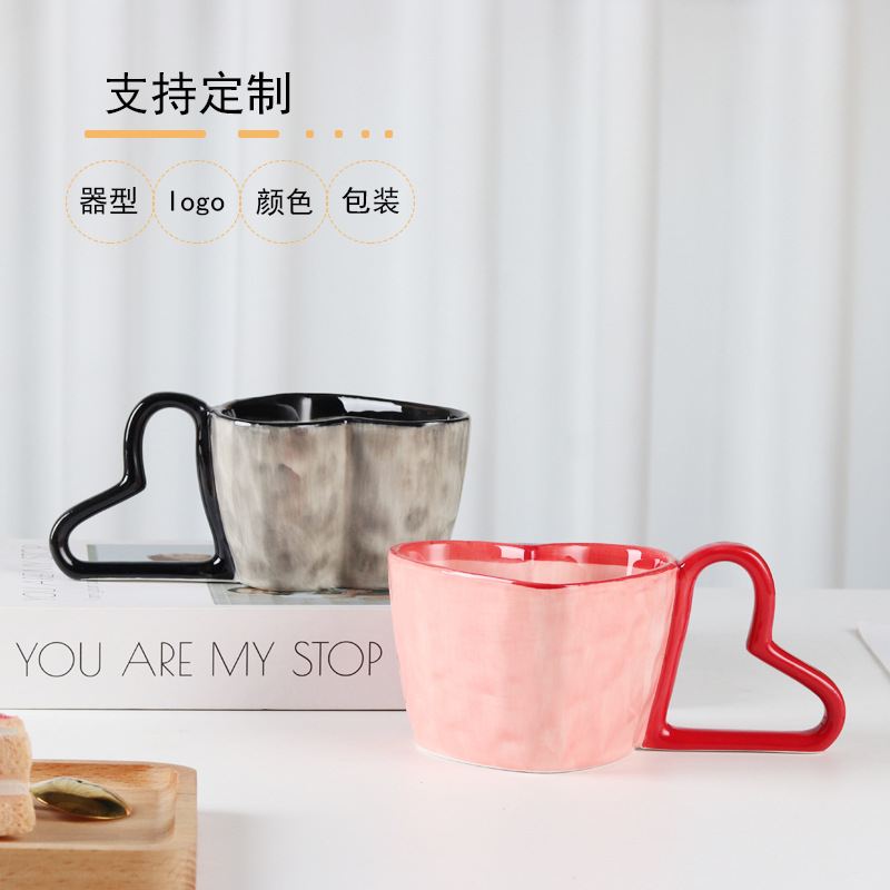陶磁器の手描きの愛のコーヒーカップのアイデアの不規則な愛の取っ手の陶磁器のコップのカップルの高い顔の値のマグカップ
