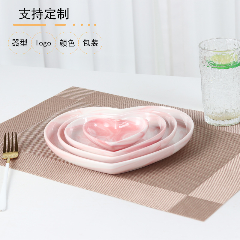 北欧風飯碗サラダ碗家庭用料理皿創意愛ハート型陶磁器大理石紋桃心食器皿