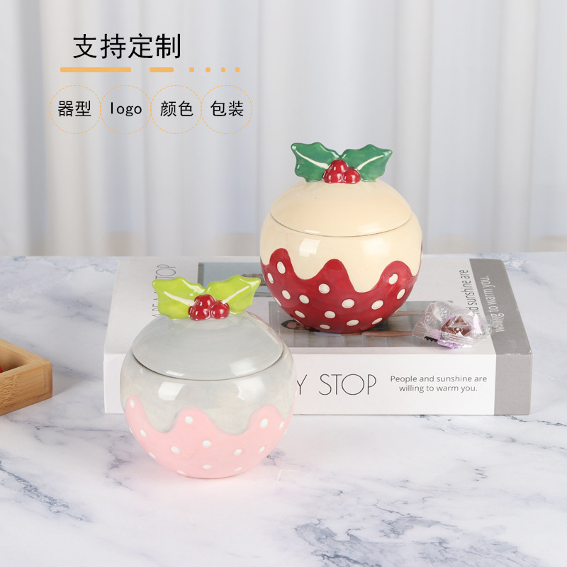 創意陶磁器の手描き密封缶収納貯蔵タンク陶磁器のかわいいカラーのお茶のキャンディー缶のお土産の置物