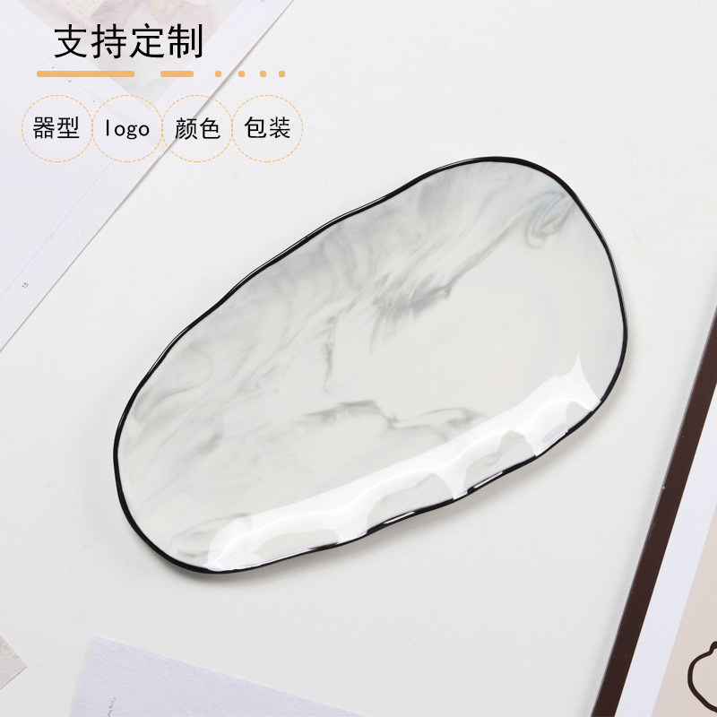 12寸の西洋の食事の皿のステーキの皿の楕円形の大理石の陶磁器の食器の皿のピザの皿の朝食の皿のデザートの皿