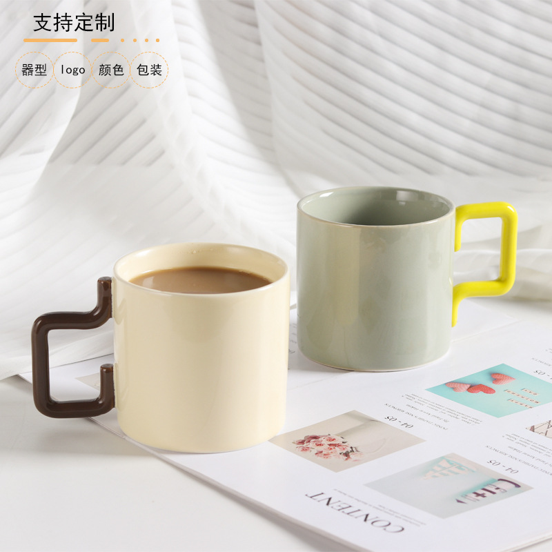 北欧衝突色幾何学ハンドルセラミックマグカップシンプル個性コーヒーミルクカップオフィス家庭用クリエイティブカップ