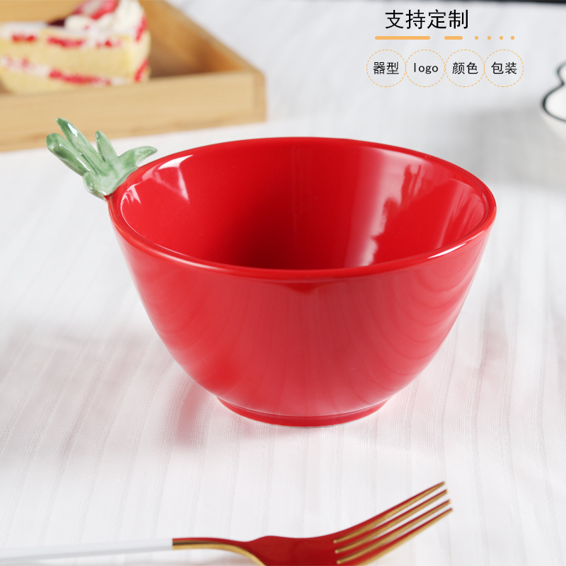 創意的なトマトの形のお祝いの赤い陶磁器のサラダの碗の家庭用の中国式のご飯の碗の結婚祝いの碗の食器