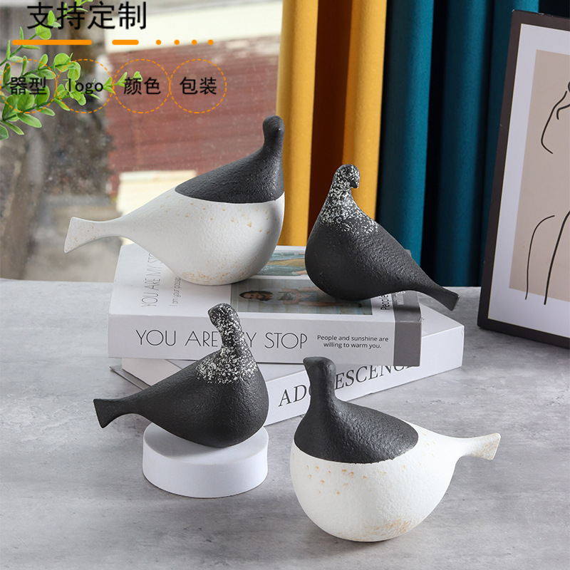 現代のシンプルな家庭装飾品陶磁器の太い釉薬の置物の客間の事務室の白黒の色合わせの小鳥の工芸品