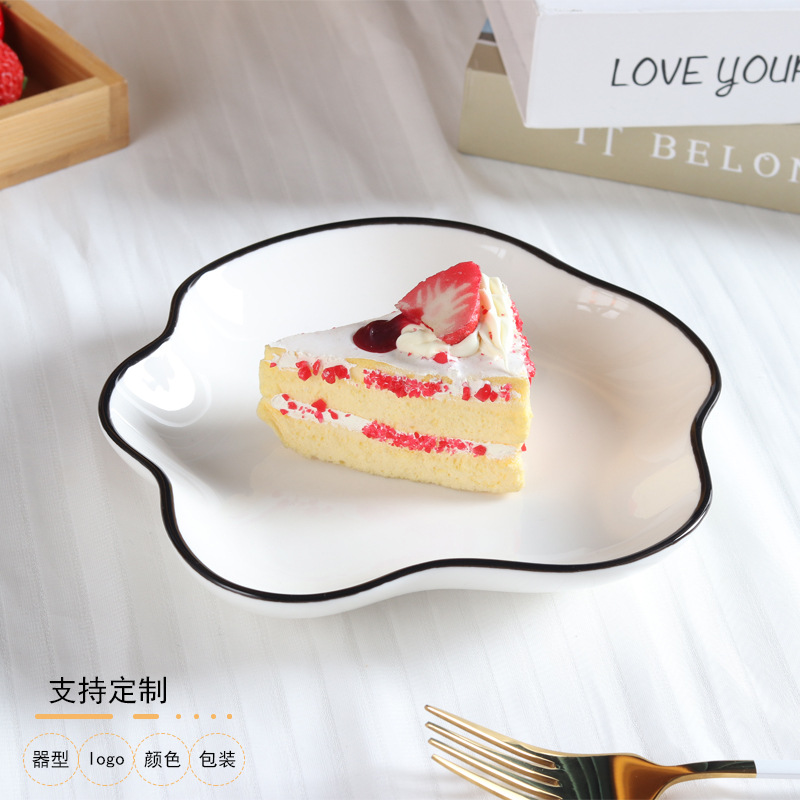 創意の不規則な異形の黒い辺の陶磁器の皿の料理の皿のサラダの碗の創意の芸術の波は境地の食器を飾っています。