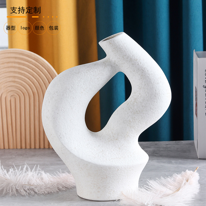 創造性現代シンプルな北欧風の太い釉薬陶器の花瓶のリビングルームの豪華な感じの家庭芸術の装飾の生け花の置物