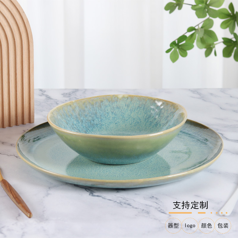 陶磁器レトロレトロ日本式食器スープ碗窯変盤食器セットレストラン家庭用茶碗