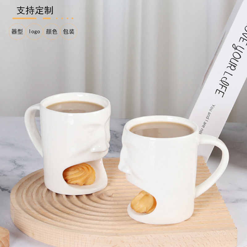 クロスボーダー300mlクリエイティブセラミックカップマグカップ個性牛乳朝食カップロゴ白磁器ビスケットカップ