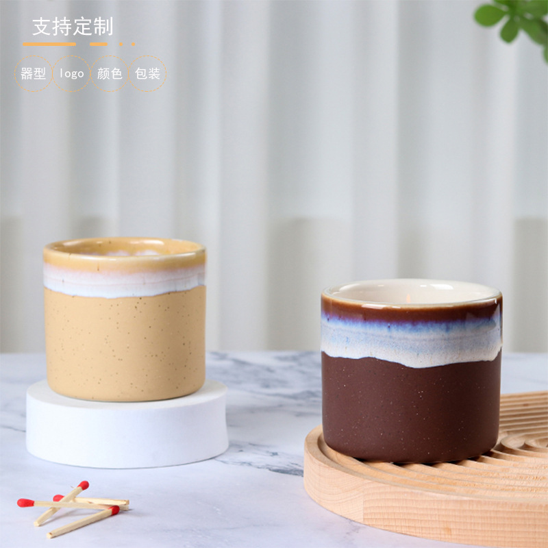 国境を越えたレトロな窯が陶磁器のアロマキャンドルカップの家庭用ワックスカップの室内装飾品に変わってロゴを印刷することができる