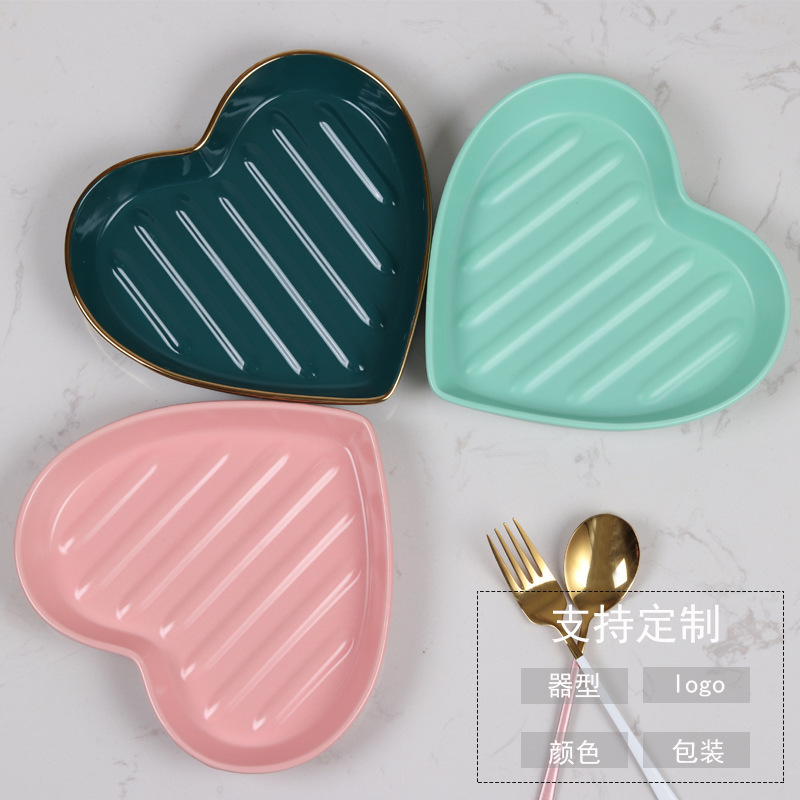 陶磁器の愛の型の碗の皿の食器のサラダの皿のストライプの愛の皿の家庭の洋食のパスタの皿の朝食のお菓子の皿