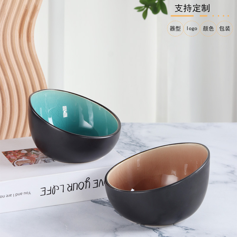 レトロな陶磁器の色の釉薬の食事の碗の氷は釉薬のデザートの碗の斜口の軽食の碗の鍋の調味料の碗の食器を割ります