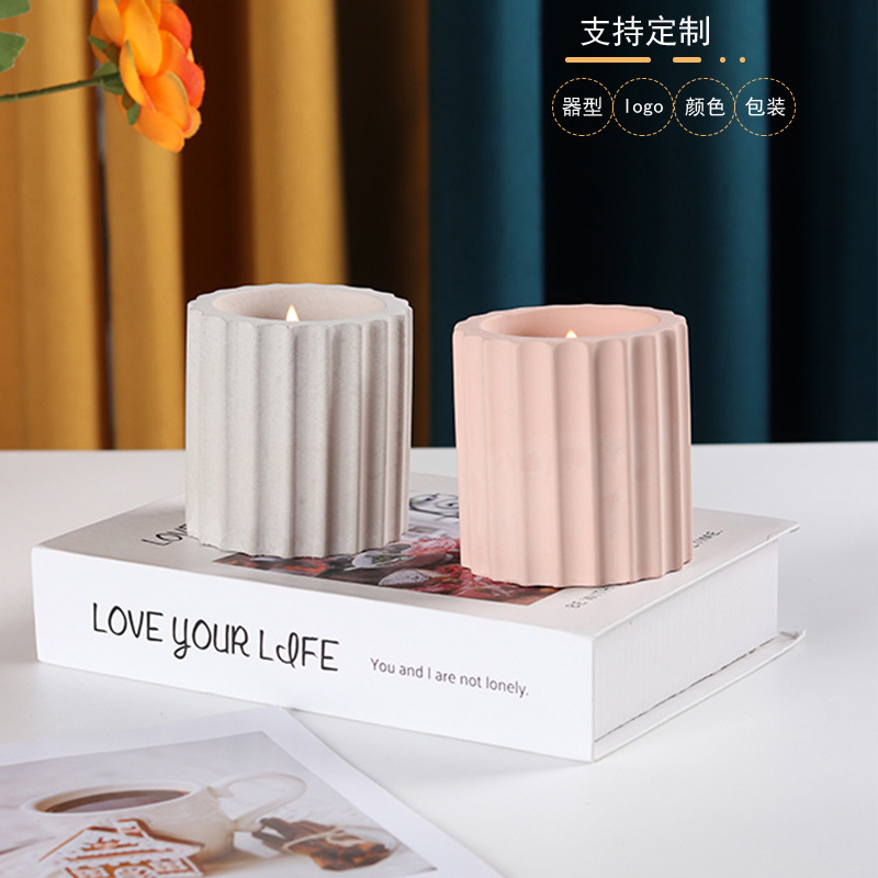 クロスボーダーつや消しストライプキャンドルコンテナ空カップinsセメントアロマキャンドルカップdiy高颜値キャンドル缶