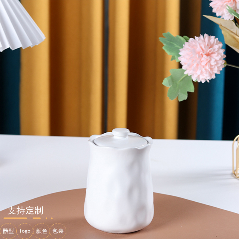 凹凸石紋陶磁器密封缶砂糖缶キャンディー貯蔵缶蓋付き飾りスナック茶葉貯蔵缶