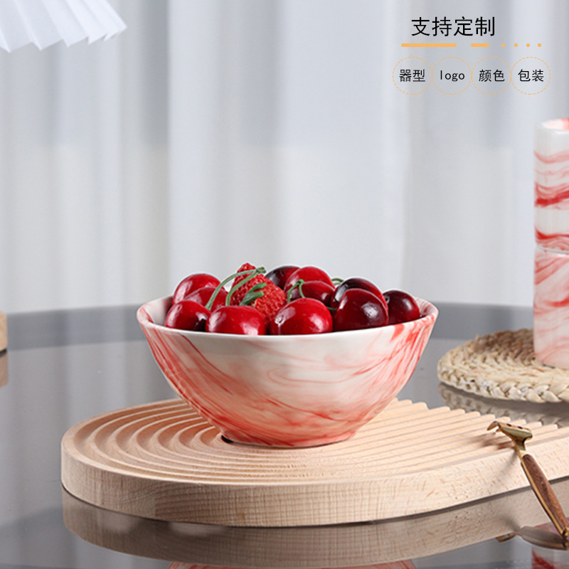 陶磁器の赤い大理石の紋様の碗の家庭用陶磁器の碗の麺の碗のスープの碗の個性のデザートの碗の北欧のサラダの碗