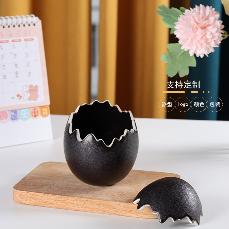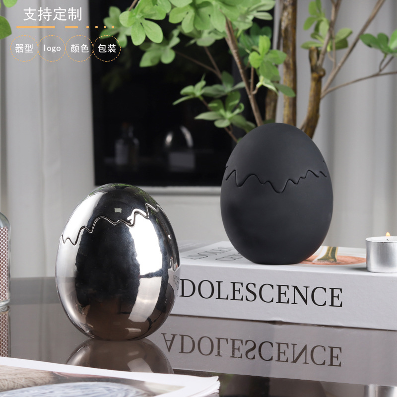 国境を越えた創造的な卵の殻の陶磁器のろうそくの杯のワックスの香薫の卵の形のろうそくのコップの蓋の卵の殻はloをプラスすることができます。