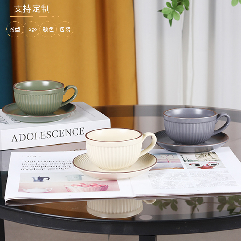 高級レトロセラミックコーヒーカップセットプルカップコーヒーカップ皿洗練された朝食カップ家庭用釉薬マグカップ