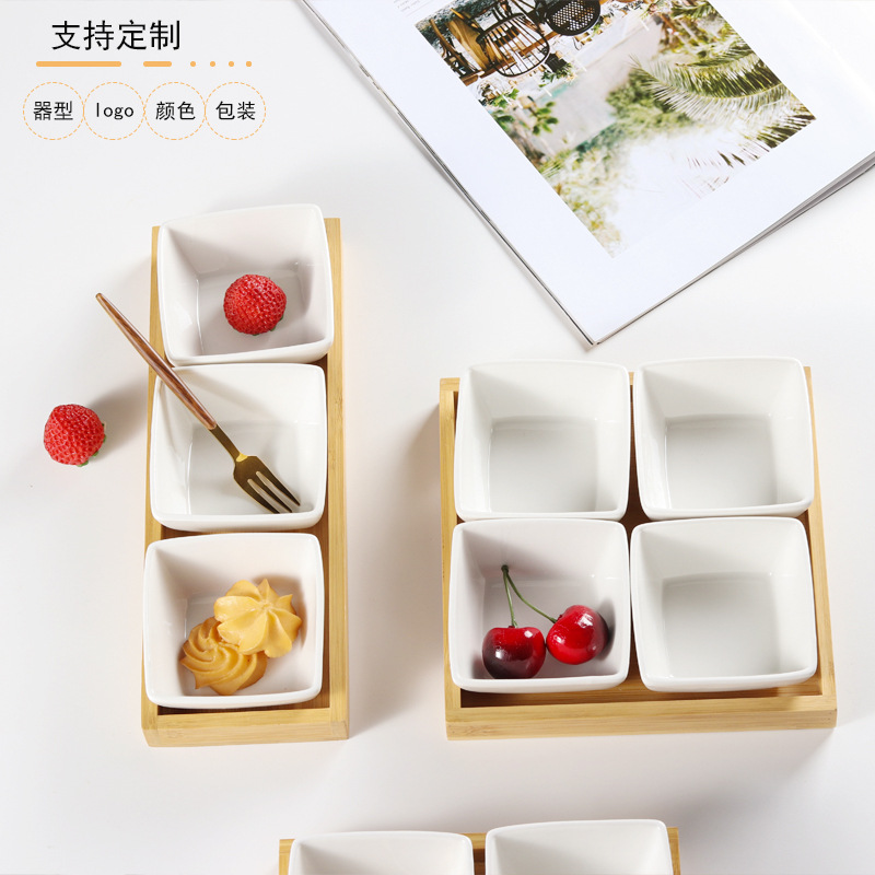 陶磁器の日本式の果物の皿の竹の木の分格の皿の零食の皿のナッツの皿の調味料の皿の乾燥した果物の皿の軽食の皿は木の托を持っています。