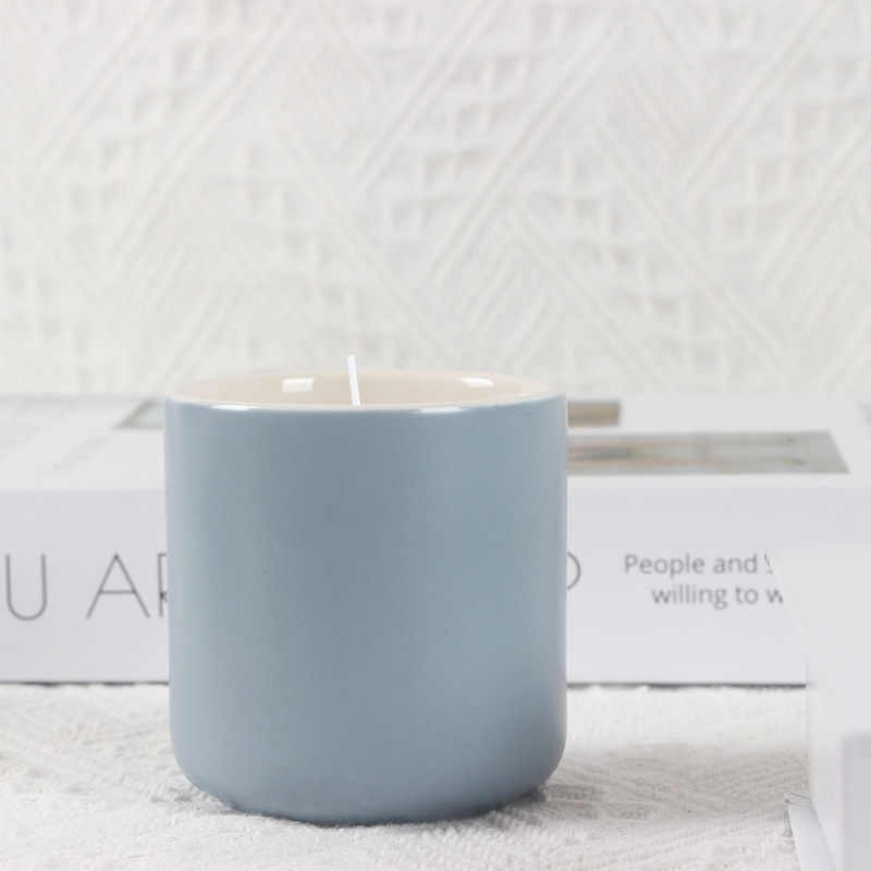 人気のヨーロッパ風シンプルな色の陶磁器の燭台のろうそくの容器のつや消しの陶磁器のアロマキャンドルのコップ