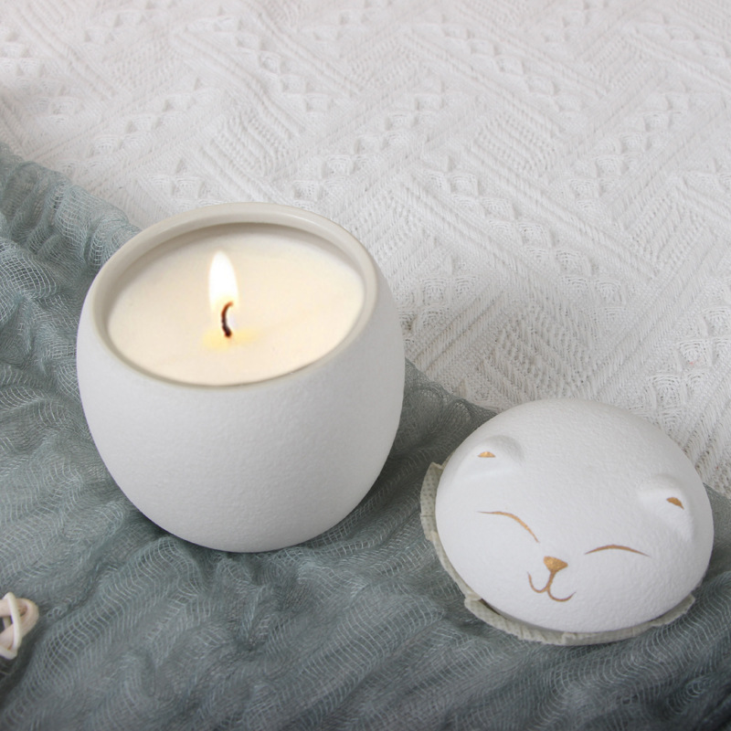 人気かわいい招き猫陶磁器ろうそくカップミニ陶磁器缶粗釉薬ろうそくカップ蓋付きロゴ付き