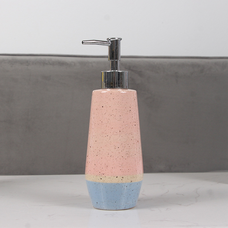 創意的な陶磁器の乳液の瓶は分けてホテルの風呂の手洗いの液体の瓶の色釉のシャンプーの瓶のセットを押して設計します。