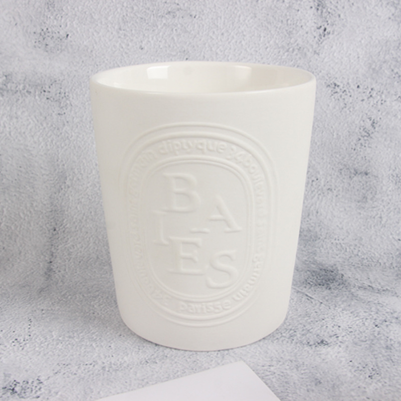 よく売れているメーカーは直接レリーフ陶磁器のろうそくの杯の創意的なレリーフのlogoの円形の艶消し陶磁器のろうそくの杯を提供します。