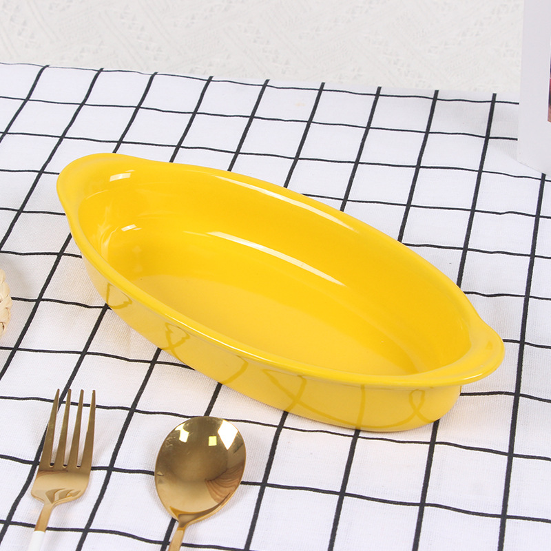 国境を越えたアマゾンの人気電子レンジ焼き皿セラミック釉薬両耳焼きボウル楕円チーズ焼き皿