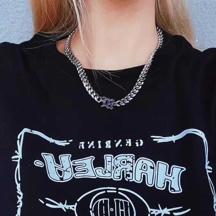 ヒップホップ百合mアルファベットペンダントチタン鋼ネックレス男ins潮小衆デザインスキューバチェーンシンプルで冷たい風飾り