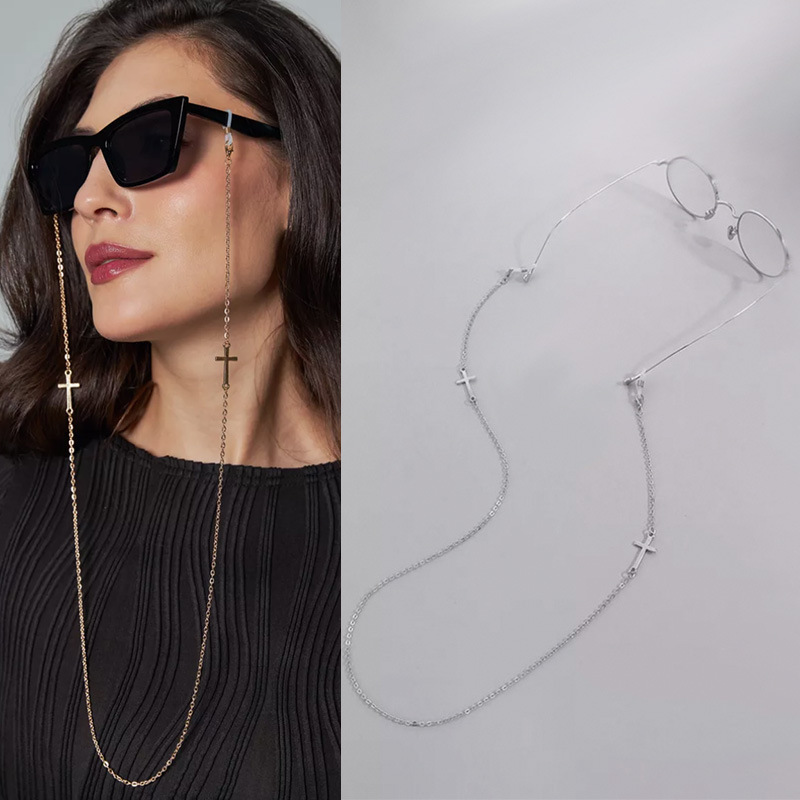 ヨーロッパとアメリカのクロスボーダージュエリー対称メタルクロスメガネチェーン女性用シンプルな気質多目的マスク滑り止めストラップ