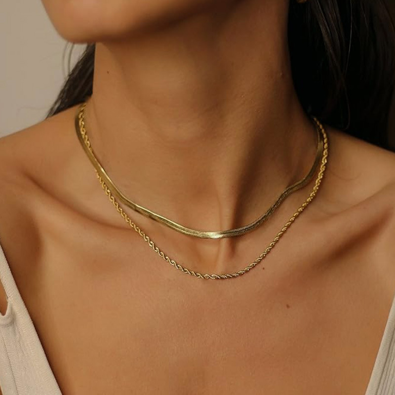 ヨーロッパとアメリカのクロスボーダーホットスタイルインスタイルレトロ二層フラットスネークチェーンツイストチェーンスタックスタイルネックレス鎖骨チェーン女性用