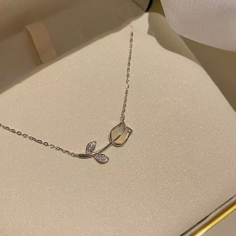 チューリップネックレス女ins金メッキ白k鎖骨鎖小衆軽贅沢高級感ネックレスファッション超仙気閨蜜