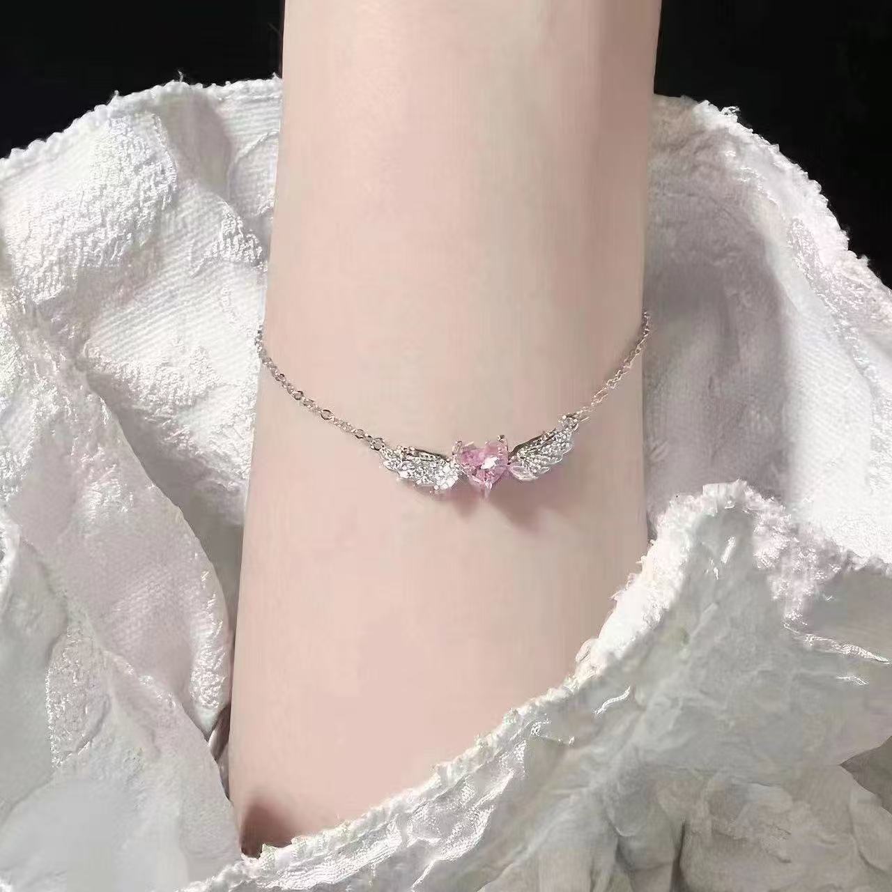 エンジェルウィングピンクダイヤモンドラブブレスレットレディースニッチデザインイン絶妙なスーパーフェアリーハイエンド多用途ガールフレンドブレスレット