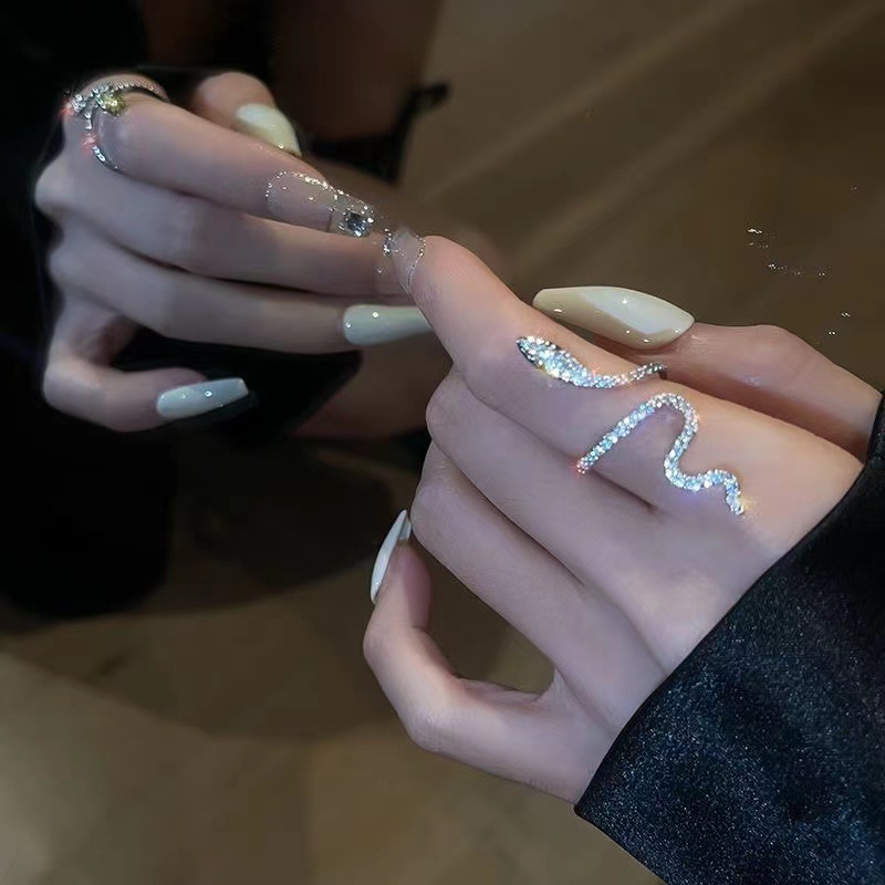 閃光ドリルの蛇の形の指輪の女性insの軽豪華な大衆はギャルの個性の指環の高級なネットの赤い口の指の指輪を設計します。