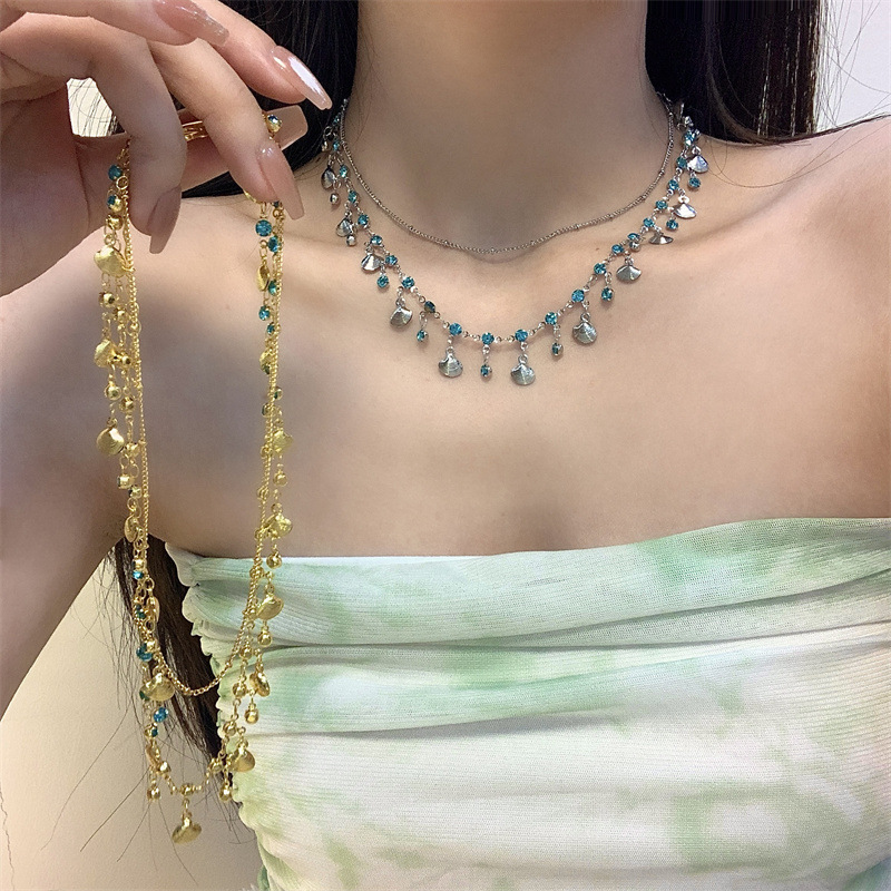 2025 新ヨーロッパとアメリカのクロスボーダーシェルタッセルペンダントネックレス女性の宮殿スタイルの積層ブレスレットアンクレット鎖骨チェーン