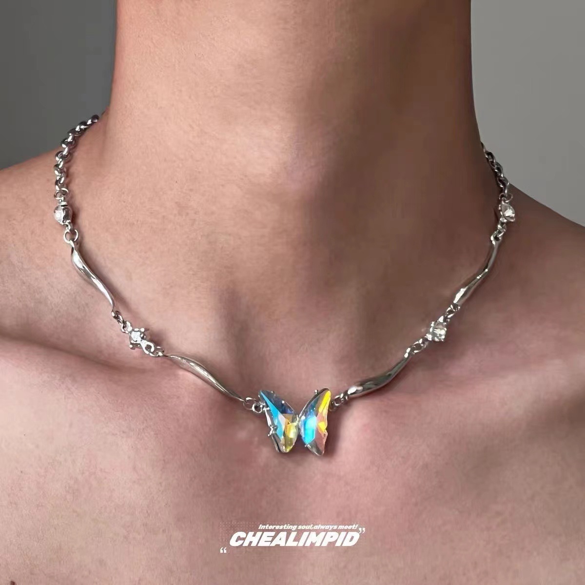 グラデーション蝶金属不規則ネックレスy2kギャルファッション男女鎖骨鎖小衆デザイン感首鎖