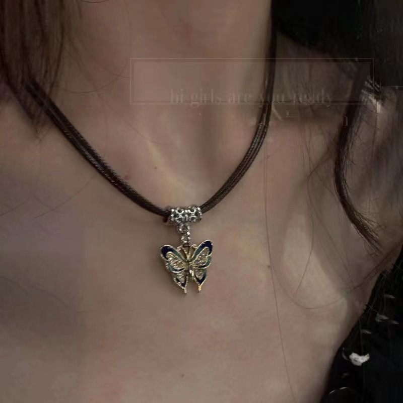 超美レトロ蝶ペンダントネックレス女性高級感革ロープ首輪ガードルネックレスファッション