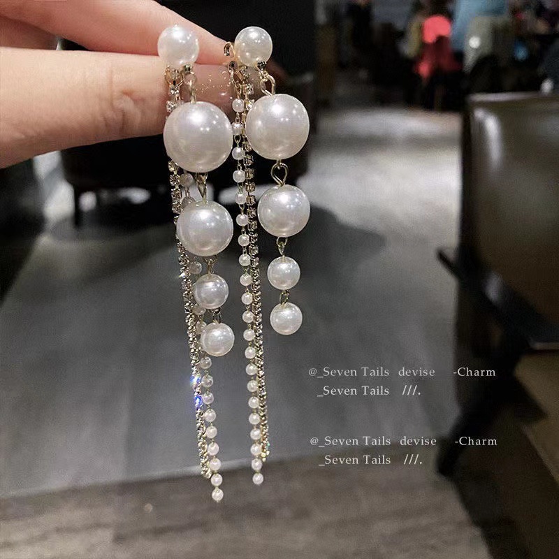 イヤリングの女性2023年の新型の潮のイヤリングの気質の高級感のフランスの精巧なフリンジの軽い豪華な高級の真珠のイヤリング