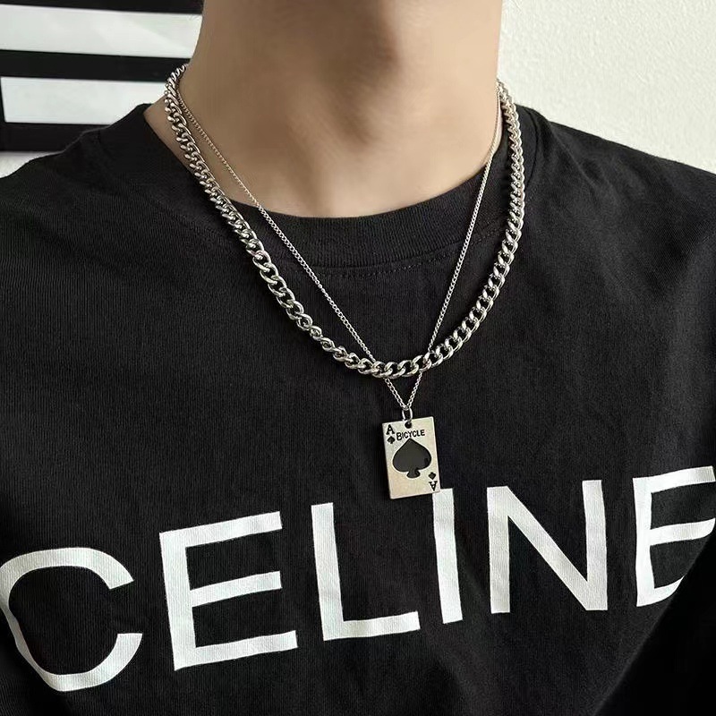 トランプのスペードのaキューバの二重のネックレスの女性は潮の男女のヒップホップの個性の小さい大衆の鎖の骨のチェーンをかぶせて冷たいです。