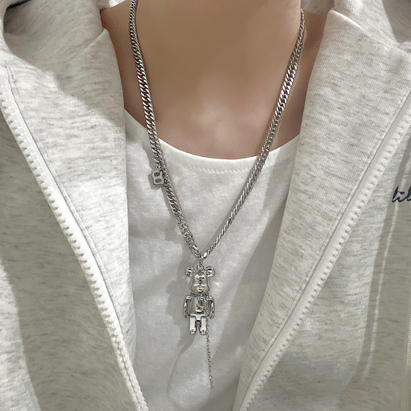 軽くて豪華なクラインの青い熊のネックレスの高い街の男女のinsの潮のクールな大衆のヒップホップの冷たい風の鎖のチェーンの装飾