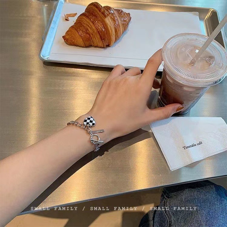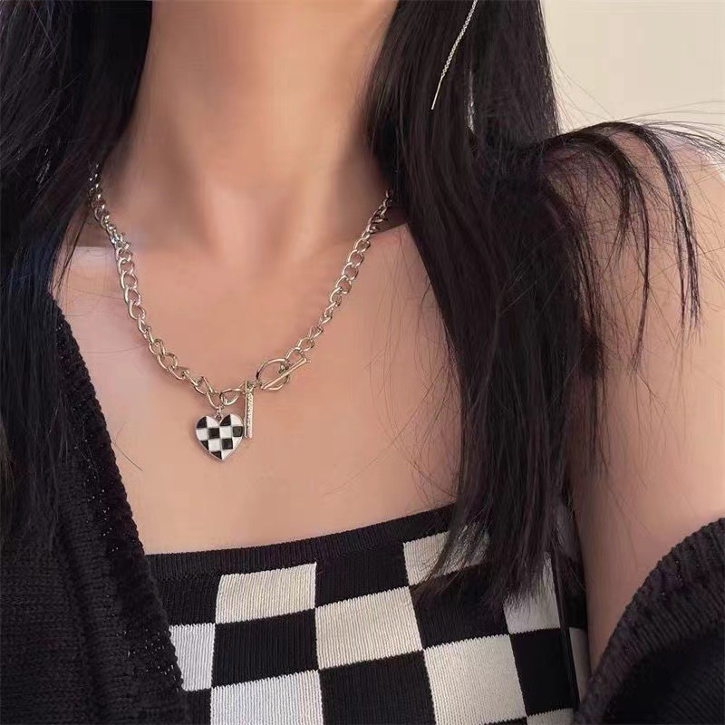 軽豪華小衆デザイン棋盤格愛ペンダントネックレス女性ブレスレット潮クールins風百合鎖鎖鎖飾り