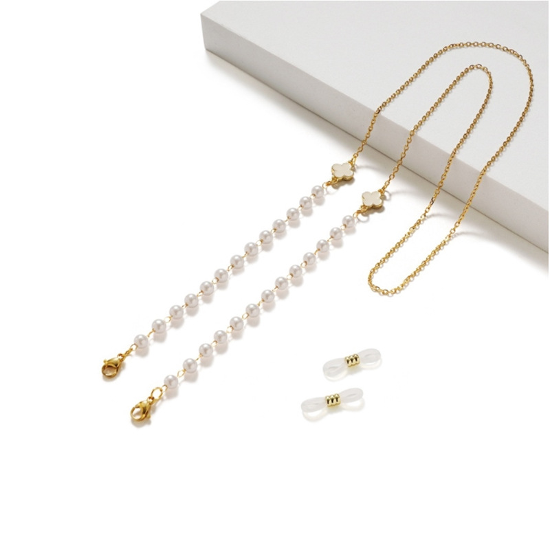 Ins新作メガネチェーン小香風滴油四葉草メガネストラップ創意マスクチェーン真珠マスクストラップ