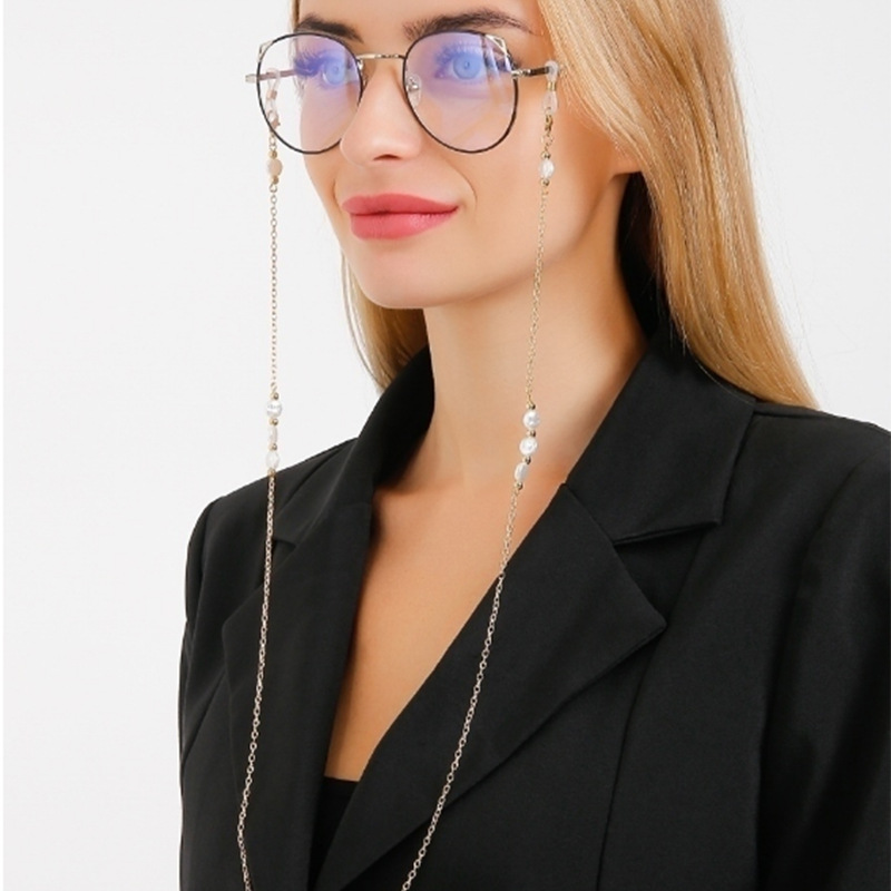 百合首メガネチェーン紛失防止ロープチェーンレトロ真珠水晶ビーズネックレス気質マスクチェーン厚メッキ
