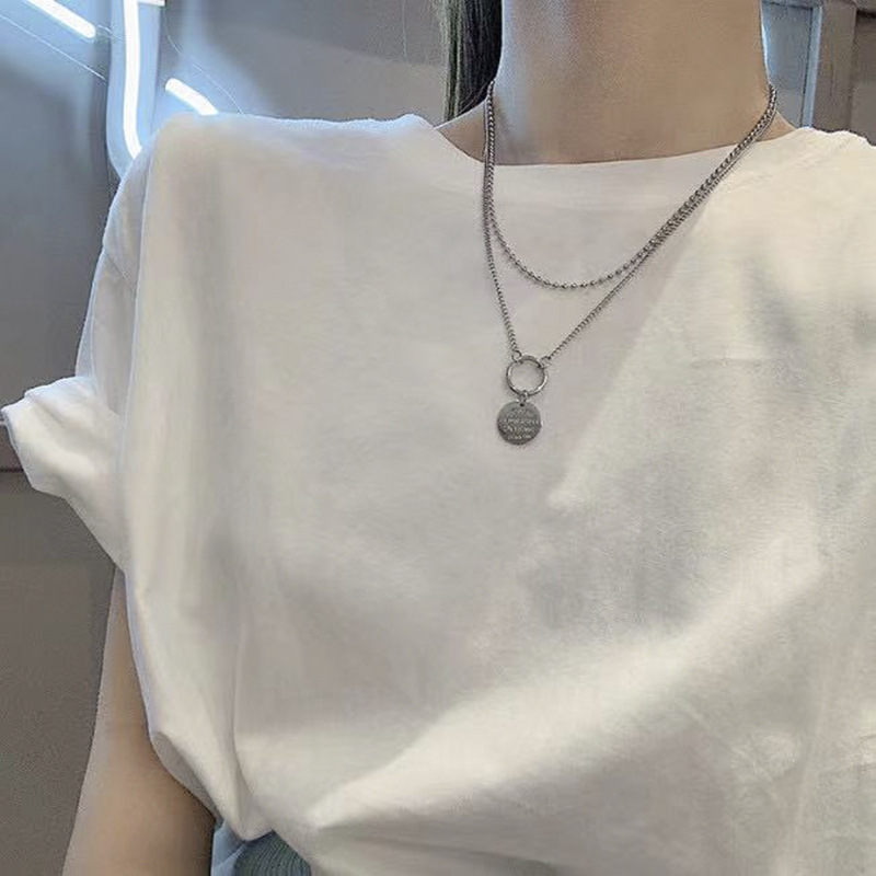 欧米のネット紅百合合金の円片のアルファベットの二重のネックレスはチェーンのカジュアルな円珠のペンダントの鎖の女性をかぶせます。