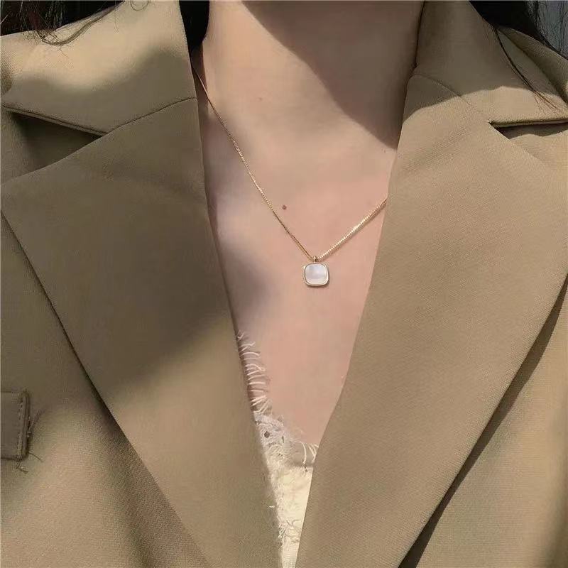 軽くて豪華な大衆の四角形は貝の母のネックレスの女性の2021新型のデザイン感をまねてシンプルな鎖の鎖の冷たい風をまねます。