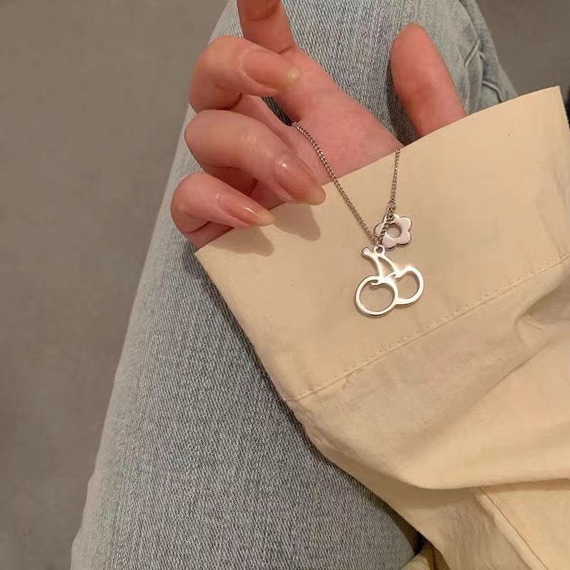 チェリーの小さい花の甘いクールなネックレスの女性の鎖ins2021年の新型のシンプルで冷たい風のかわいい首の鎖