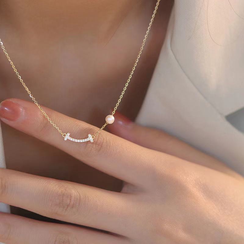 ダイヤモンドのほほえみの真珠のネックレス2021年の新型のシンプルな組み合わせの軽豪華な小さい大衆の鎖の鎖の鎖の女性